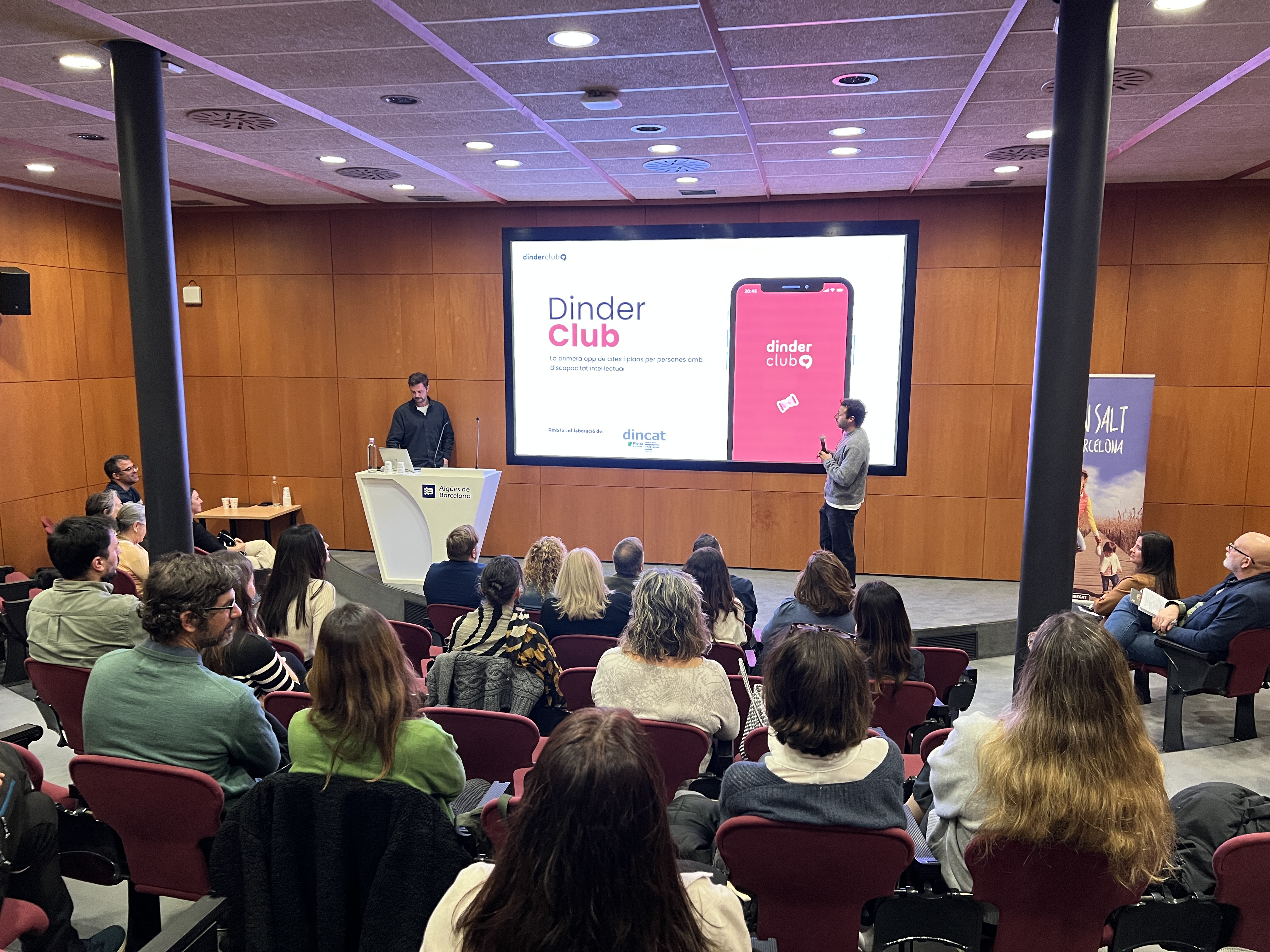 A continuació Borja Bosch i Axel Gairí han presentat Dinder Club, un projecte innovador de transformació social que promou les relacions i la vida social activa de les persones amb discapacitat intel·lectual a través d’una aplicació mòbil i activitats arreu de Catalunya, oferint una col·laboració amb els equipaments i esdeveniments del Baix Llobregat per facilitar a les persones usuàries de la nostra comarca l’accés i la participació en activitats al territori, obrint-los noves oportunitats de relació i desenvolupament personal, i contribuint així a millorar la seva qualitat de vida.