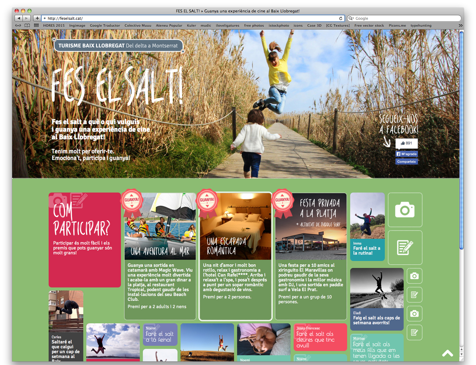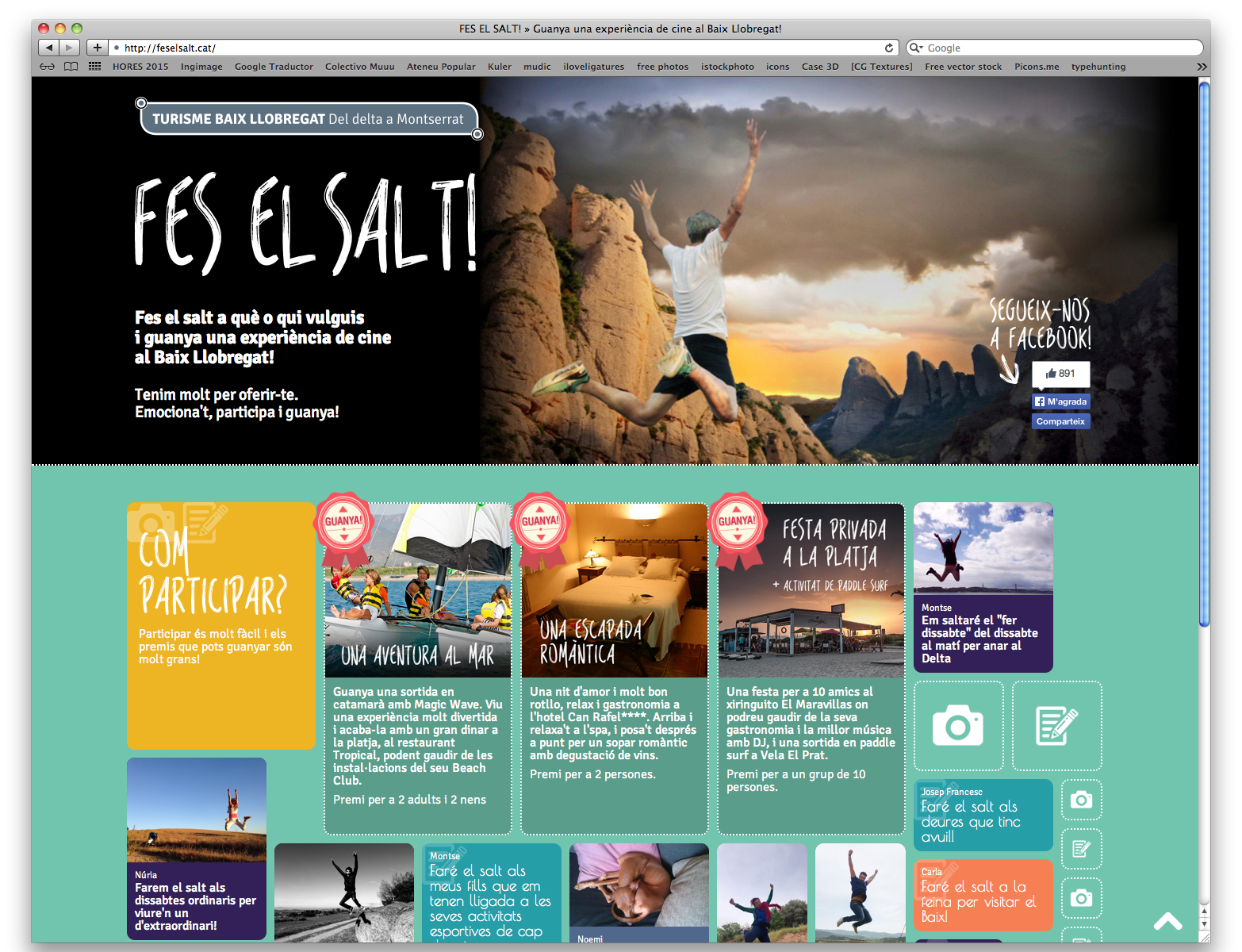 El Consorci de Turisme del Baix Llobregat posa en marxa, una aventura promocional sense precedents a la xarxa i que té com a objectiu posicionar el Baix Llobregat com a destí d’escapades. Sota el títol "Fes el salt!", una aplicació web convida els usuaris, durant un mes, a compartir a qui o a què faran el SALT per visitar el Baix Llobregat i participar en el sorteig d’uns premis molt exclusius: una festa privada per a 10 persones a la platja, una estada romàntica en un hotel quatre estrelles o una aventura al mar a bord d'un catamarà.